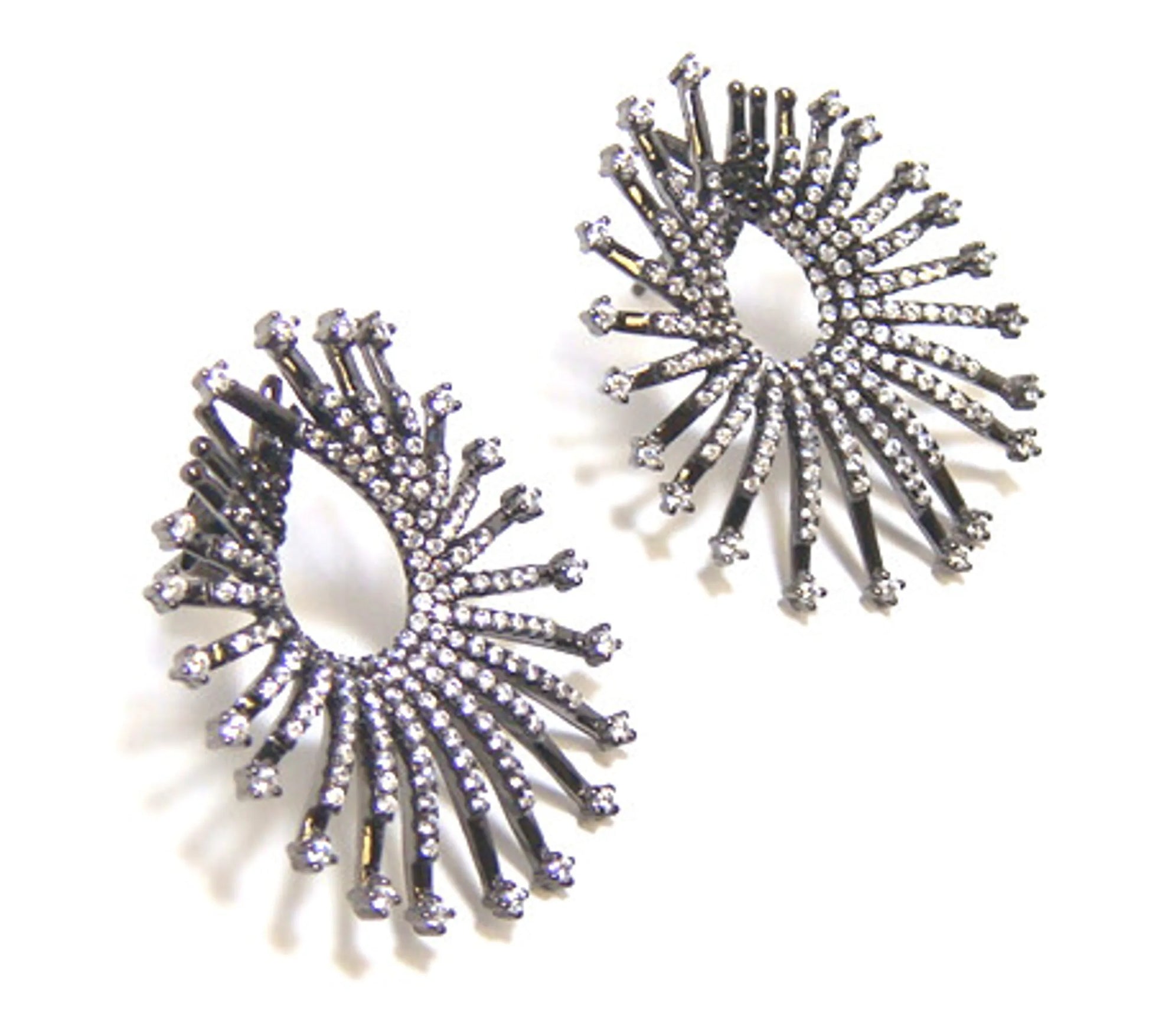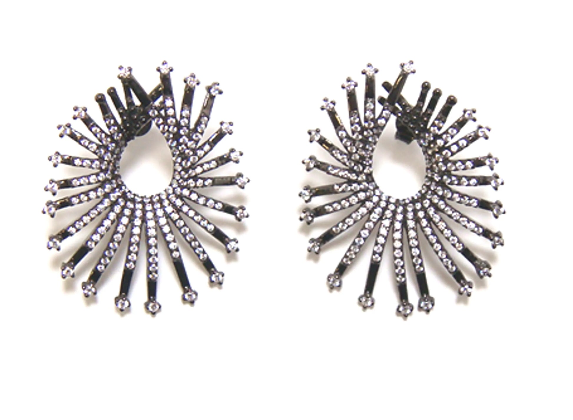 Behold the beauty and splendor of this sparkling swirl design from Canari Jewels ! A fabulous Pair you (and they) will adore! The amazing hand pin point set cz on these earrings will make an outstanding look. They are set in polished sterling silver Embraced with black gold plating. Hanging length is 1-1/4".